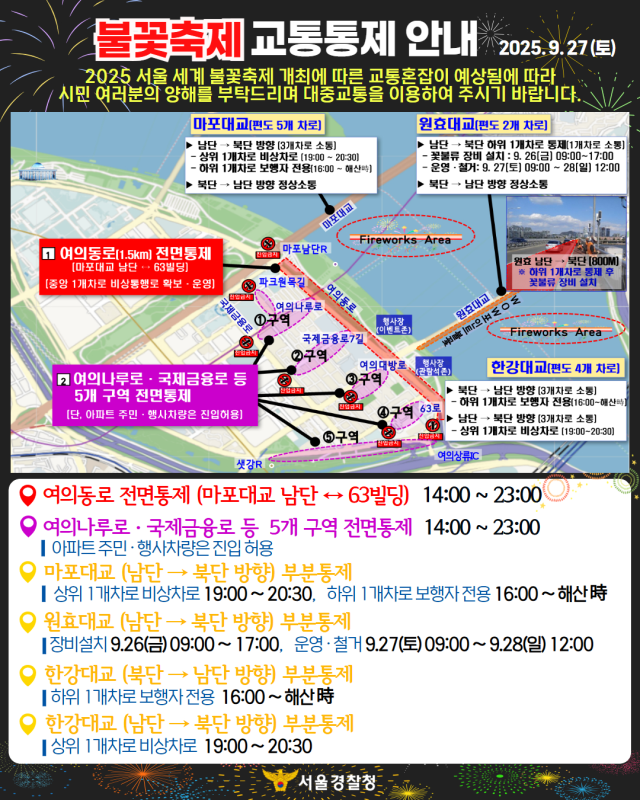 📌 9월 27일(토) 서울세계불꽃축제 교통 통제