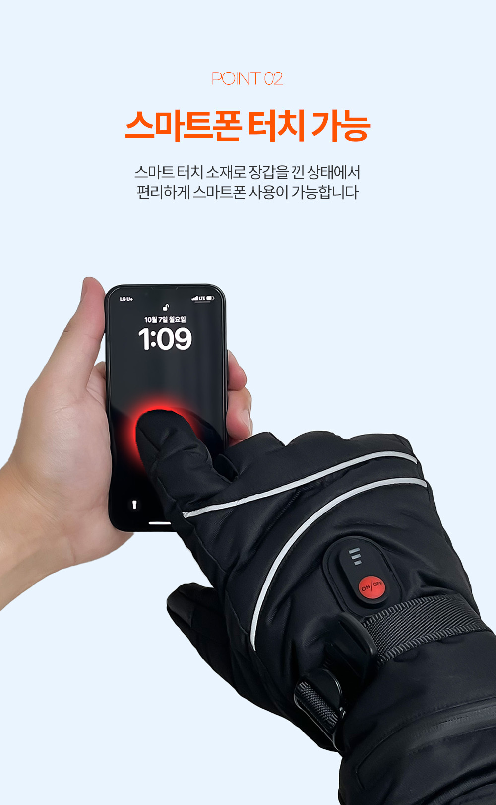 장갑 낀 상태로도 스마트폰 조작이 가능했습니다.